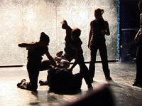 Våld är dansaren Peter Svenzons första större koreografi. Driven av en ambition att belysa samhällsutvecklingen placerar han utdrag ur medias hantering av det våld och de övergrepp som sker runt oss och omvandlar det till scenens språk där dans, musik, fakta, statistik, bild och video möter Qvadrieep, pressröster och personliga berättelser. Grupptryck, våldtäkt och misshandel. Det är så här det är upprepar rapparen entonigt från sin plats i publiken. En saxofonist och en slagverkare spelar live på scenen.